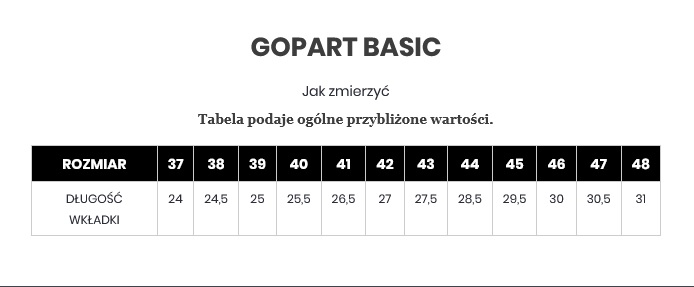 | Rozmiar | długość wkładki (cm) |