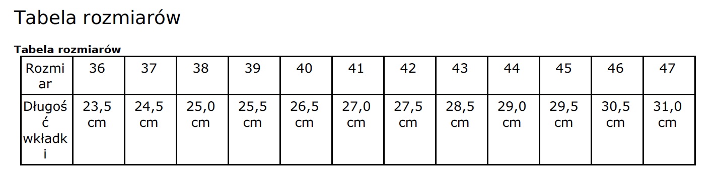 | Rozmiar | długość wkładki (cm) |