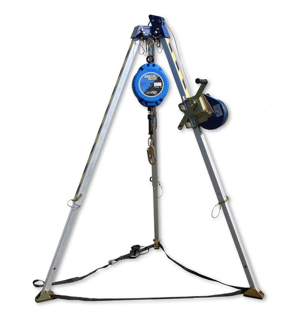 - Kit Trip10 to zestaw na który składa się: trójnóg Trip 1, urządzenie samohamowne Sekurblok 7,5 m/10 m/15 m/20 m oraz wciągarka TRN1.