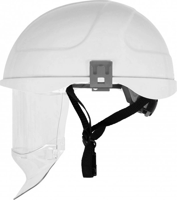 Zestaw, w skład którego wchodzi kask i osłona - przeznaczone do pracy w łuku elektrycznym klasy 1. Kask jest zintegrowany z wizjerem chroniącym przed łukiem elektrycznym.