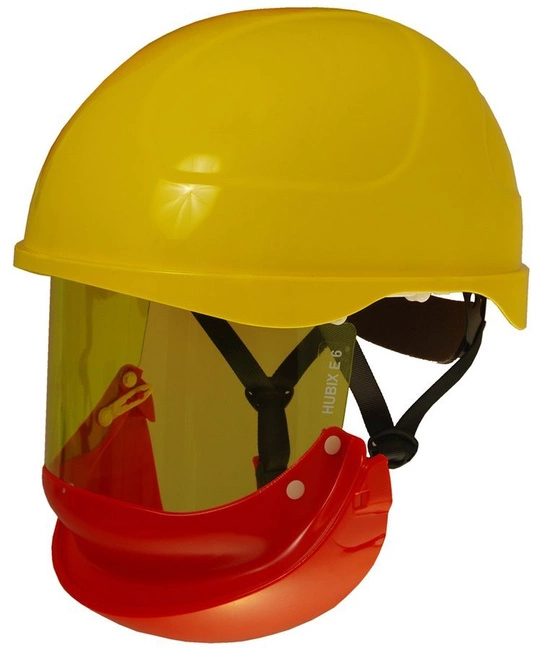 Zestaw, w skład którego wchodzi kask i osłona - przeznaczone do pracy w łuku elektrycznym klasy 2. Kask jest zintegrowany z wizjerem i chroni przed łukiem elektrycznym.