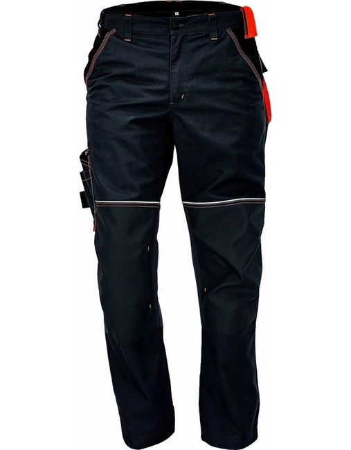 Wygodne spodnie w kolorze antracytowym z elementami kontrastowymi. Sprawdzą się w każdej dziedzinie pracy. Duże kieszeni, w tym jedna wielofunkcyjna z szlufkami na narzędzia. Wzmocnione nogawki i kolana, odporne na przetarcia. Kieszenie na nakolanniki. Możliwość wydłużenia nogawek o 5 cm.