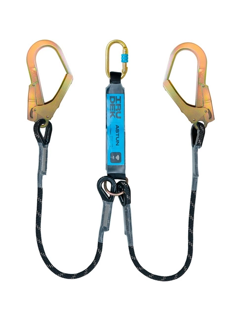 - Pochłaniacz energii z podwójną liną dostępną w trzech długościach - 100 cm / 140 cm / 180 cm każda. Produkt certyfikowany.