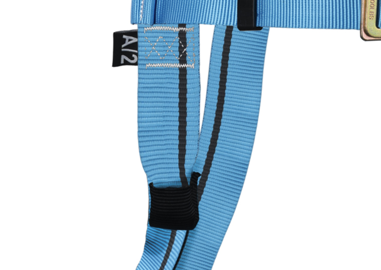 Taśma przedłużająca zaczep tylny EN 361 - Zintegrowana z pierścieniem zaczepowym grzbietowym, oznaczona literą A.