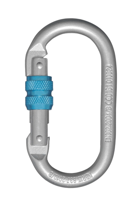 - Zakręcany karabińczyk do pracy wykonany z wytrzymałej stali.